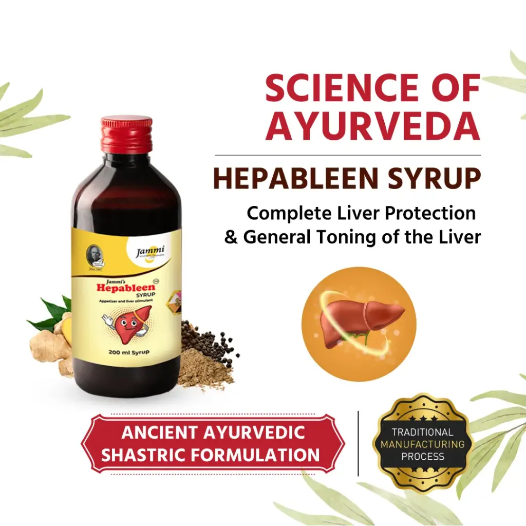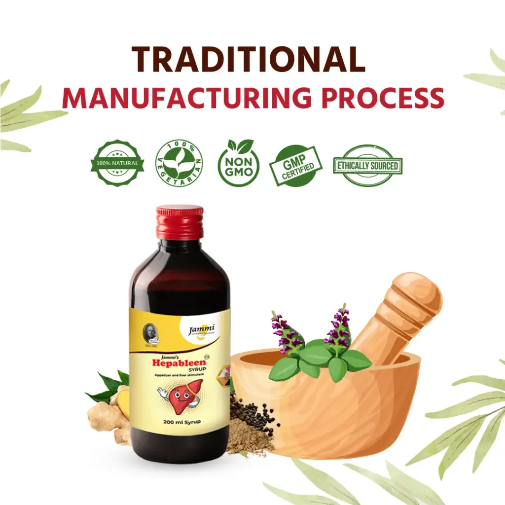 Jammi’s HEPABLEEN SYRUP is an excellent Appetizer & Liver Protective. Hepableen is made of ingredients that give Shadrasa (all six tastes) – Six tastes in Ayurveda good diet are: Madhura (Sweet), Amla (Sour), Lavana (Salty), Katu (Pungent or Hot), Tikta (Bitter) and Kashaya (Astringent). Actions of some of the ingredients of Hepableen syrup are described below: