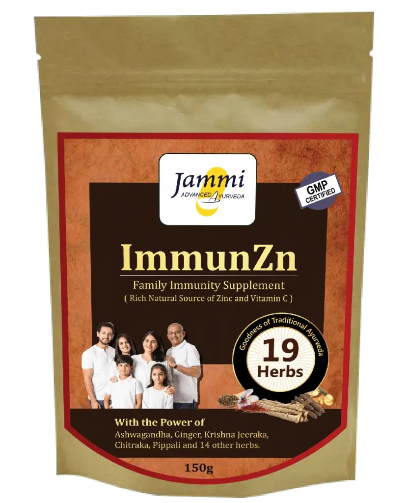 ImmunZn is an all-Natural Ayurvedic Immunity booster from Jammi Pharmaceuticals. The ingredients are a judicious mix of Ashwagandha, Krishna Jeeraka, Chitraka, Saffron, Shunthi, Maricha (Black Pepper) and several other immunity booster herbs (totally 19) to boost one’s immunity and protect oneself from the harmful effects of viruses, bacteria, and other harmful microorganisms. The critical and most advantageous aspect of taking ImmunZn is that it has no side effects.