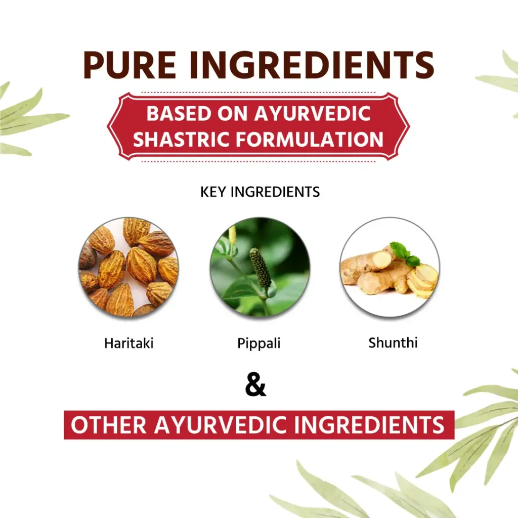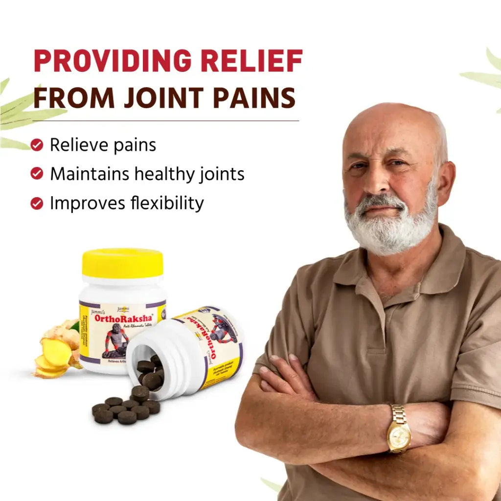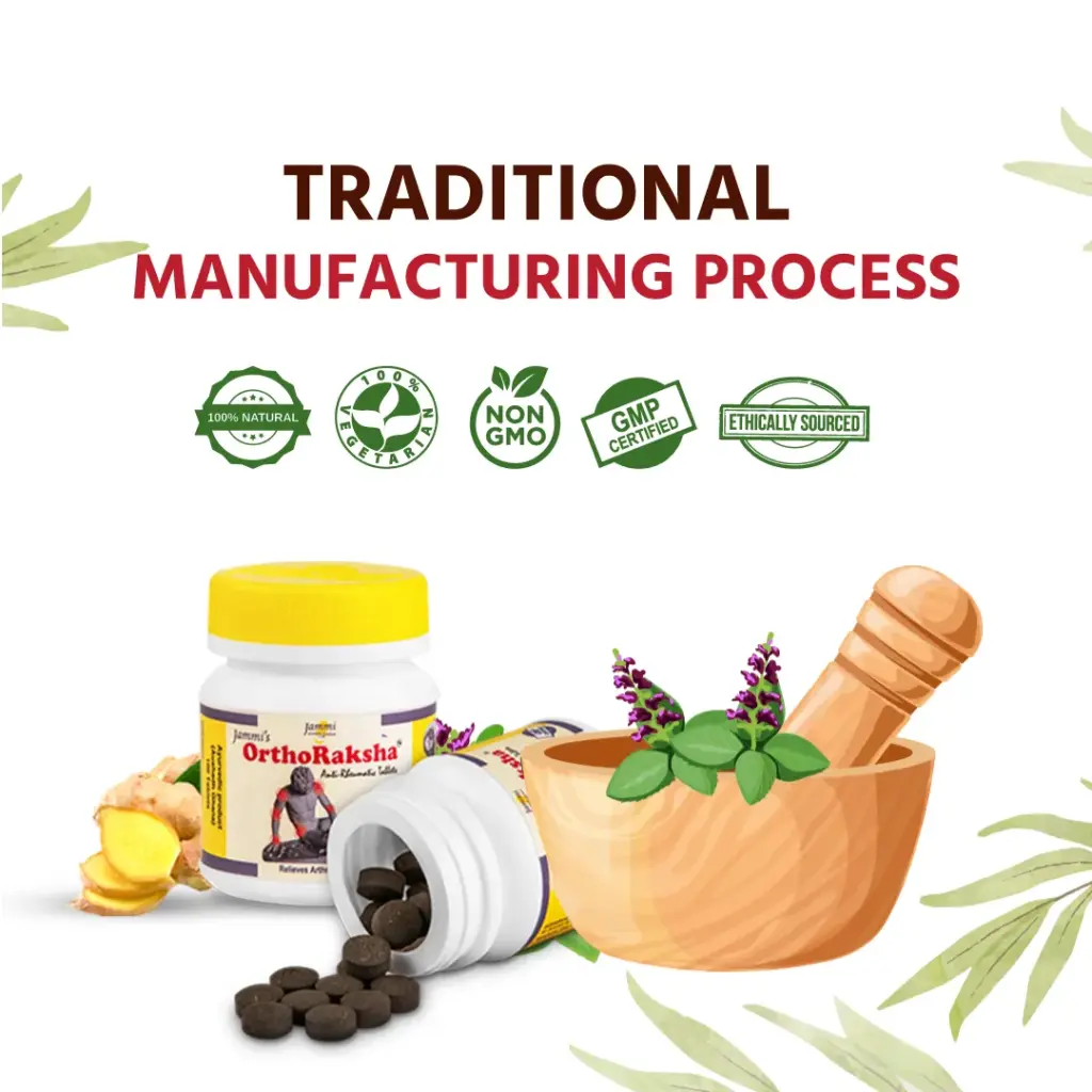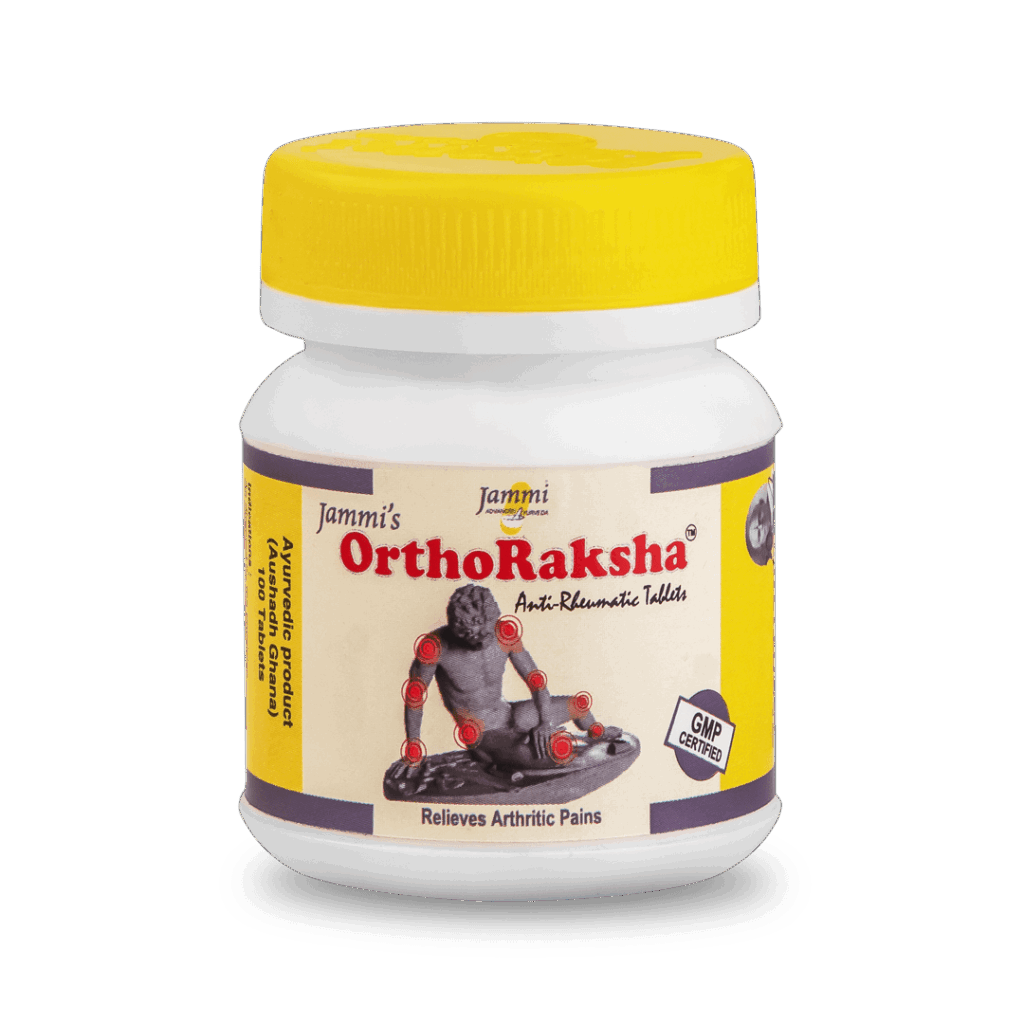 Orthoraksha tablets are made with more than 15 classical Ayurvedic ingredients that combat inflammation and other pains. The main ingredients of Ortharaksha include Shunthi, Haritaki, Pippali, Trivrit and Sauvarchala Lavana. Along with providing relief from Pain, they also make sure that they do not cause any undesirable side-effects.